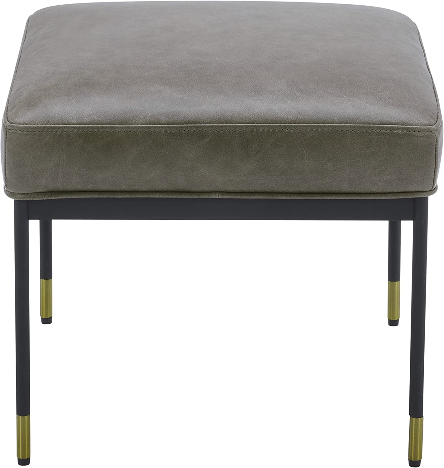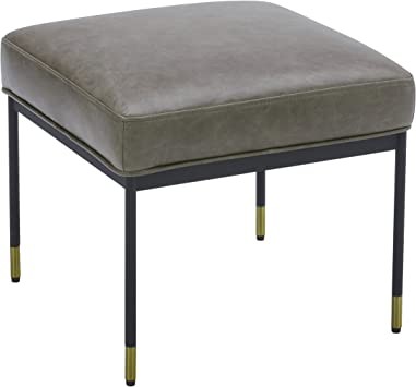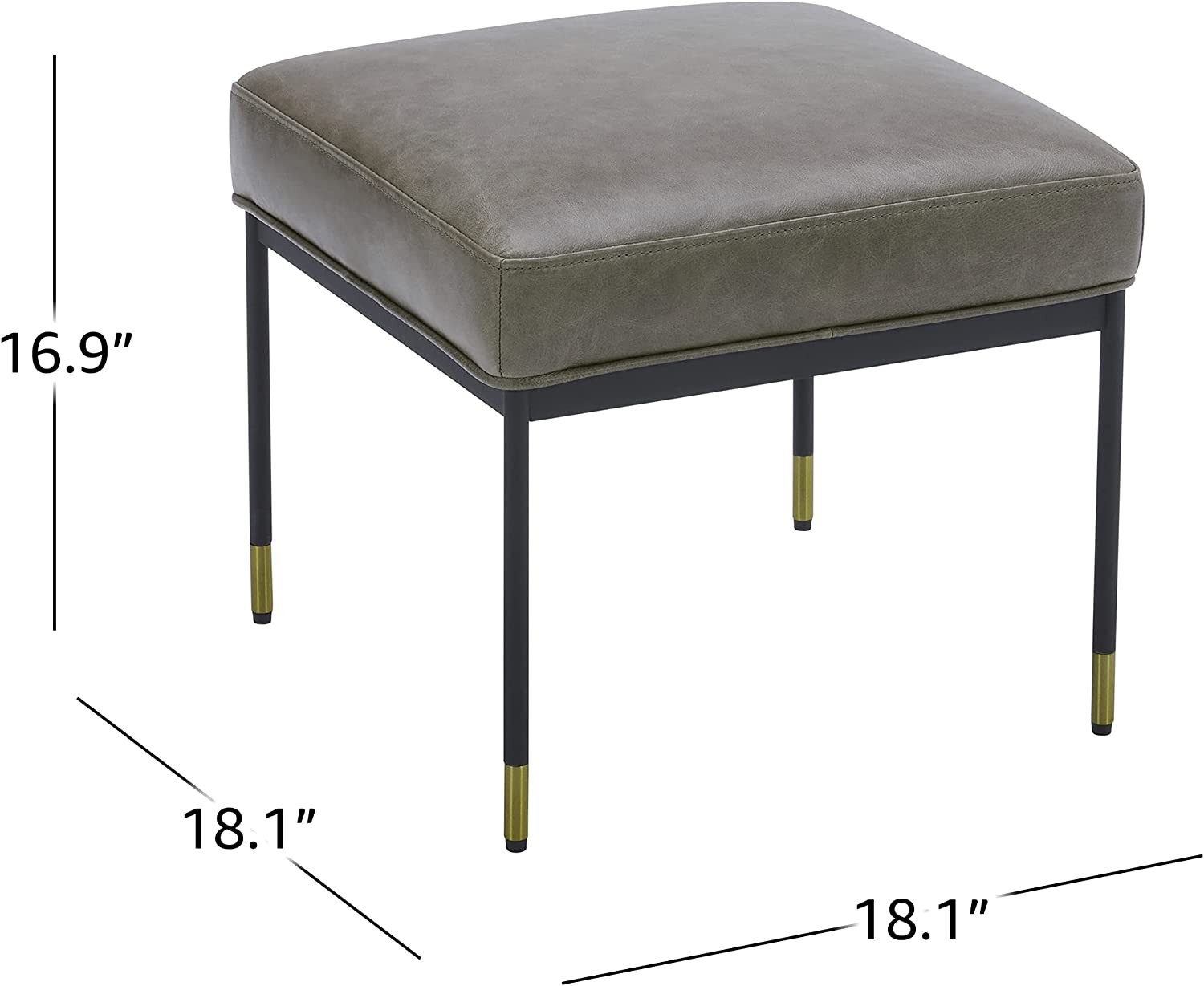 Offering elegant minimalism and maximum versatility, this modern ottoman can be used as an ottoman, side table or additional seating. The stylish design features a square seat and slender metal legs with brass trim.